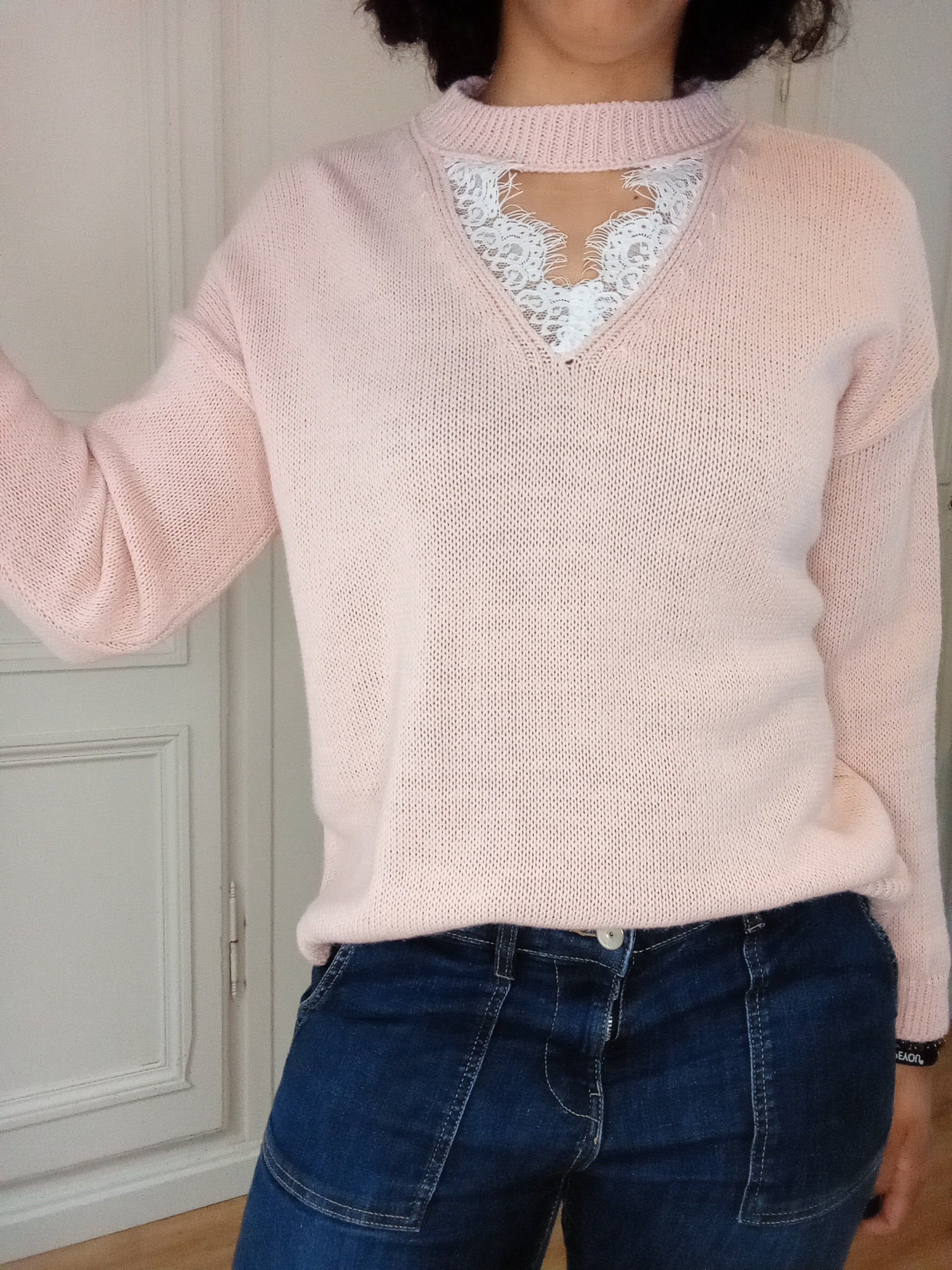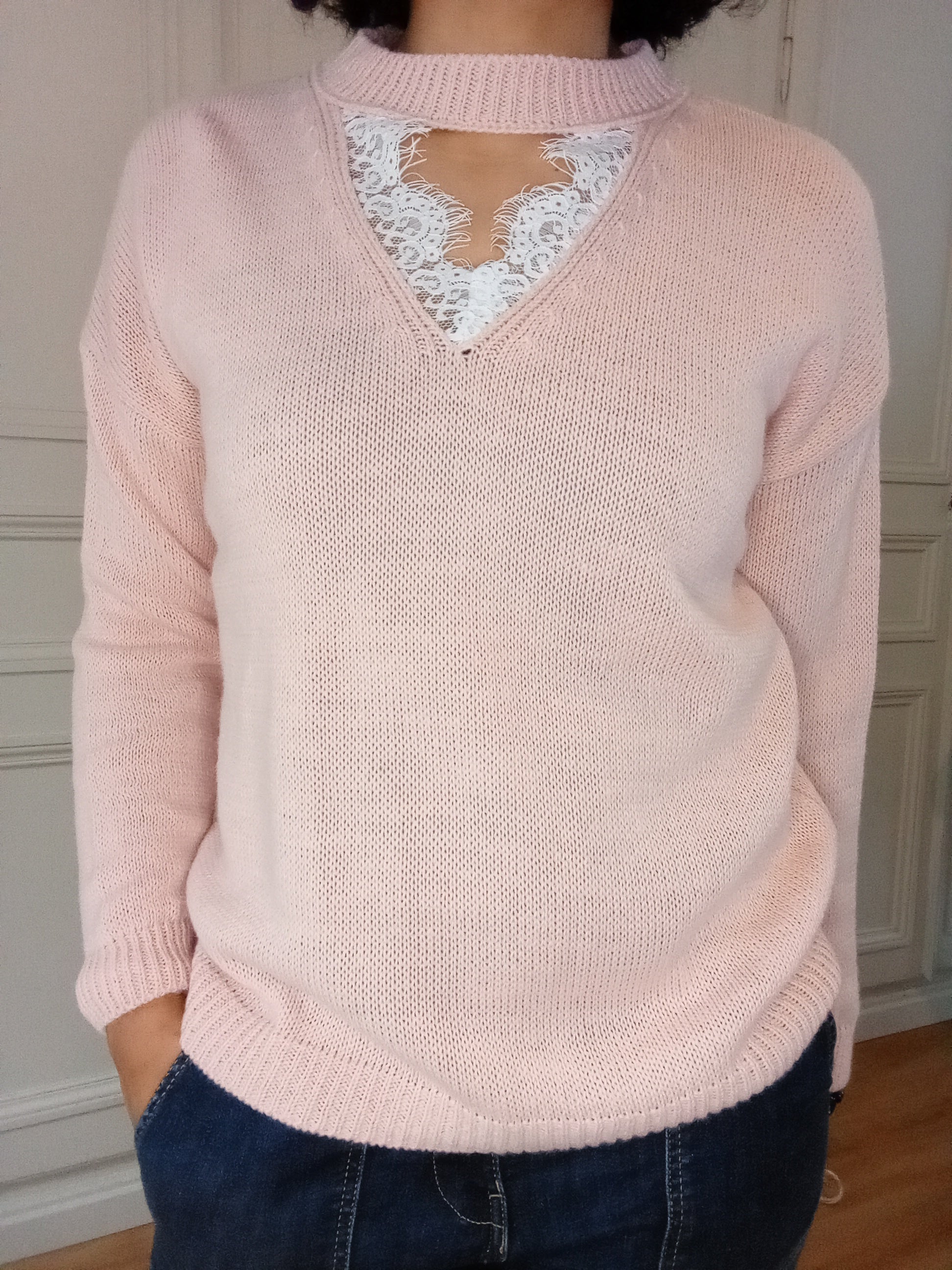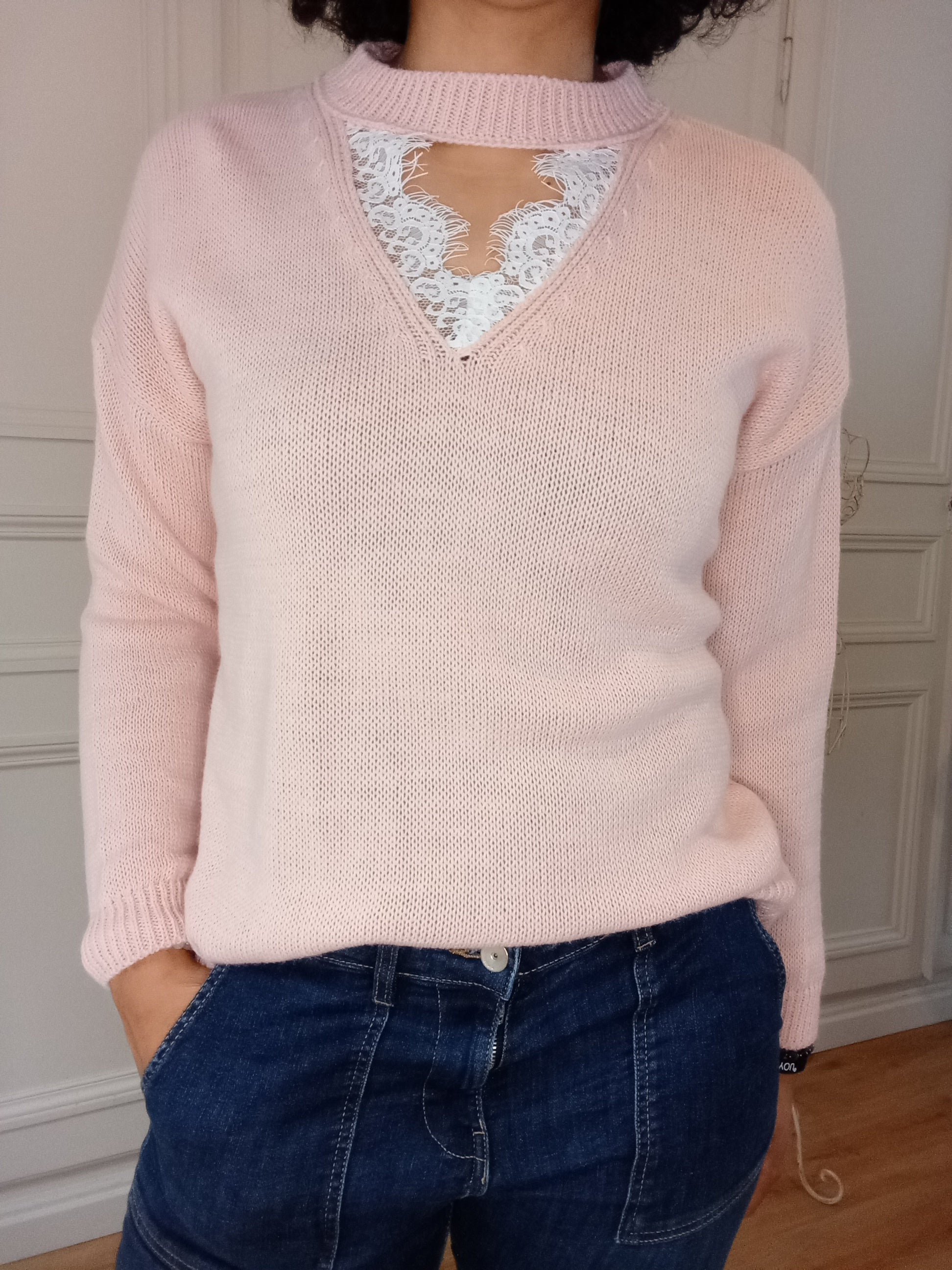 Pull col dentelle Rose
