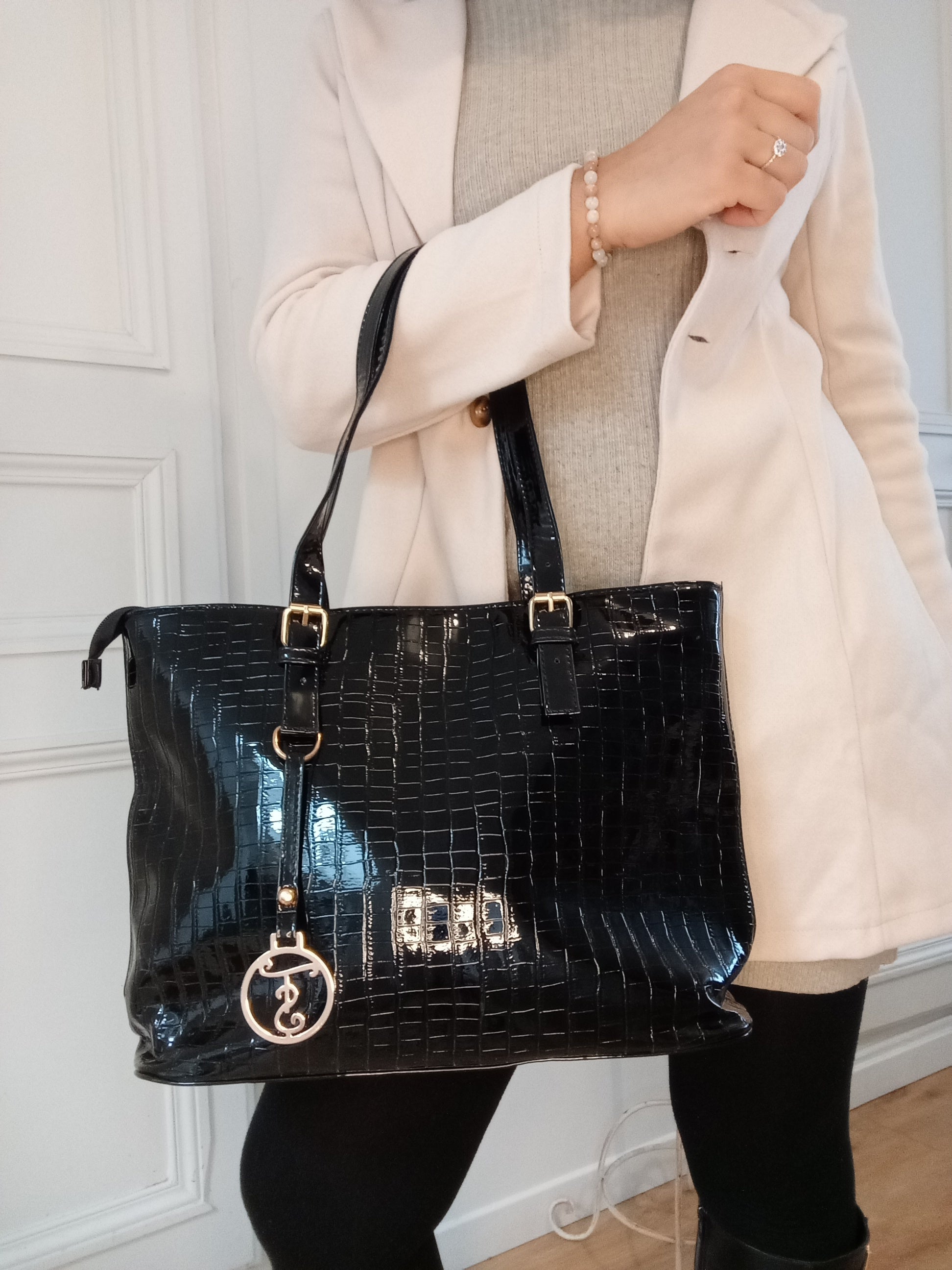 Sac à main simili cuir Noir vernis
