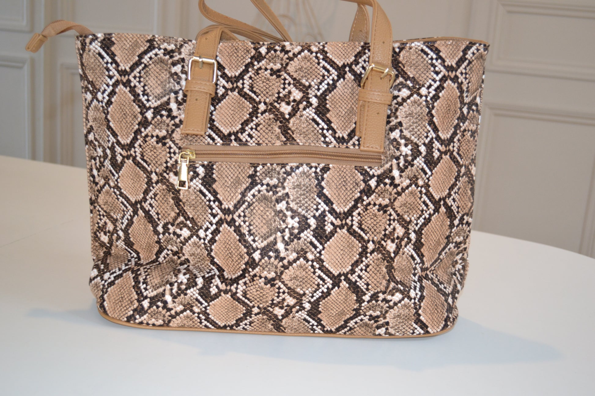 Sac à main simili cuir vernis imitation peau de serpent, intérieur doublé en tissus, avec poche fermeture éclair arrière interne et externe